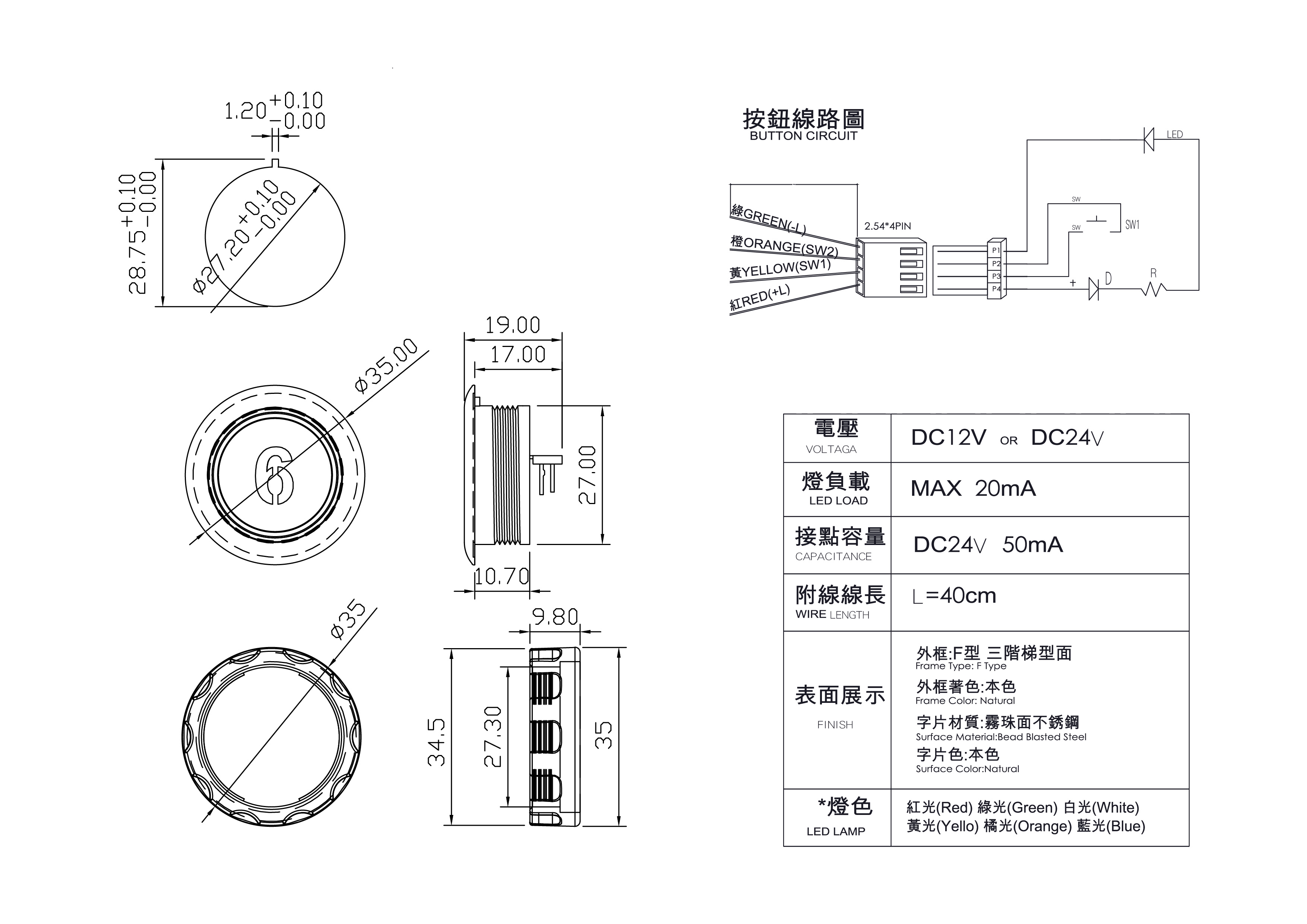 外觀尺寸 : Ø 35mm