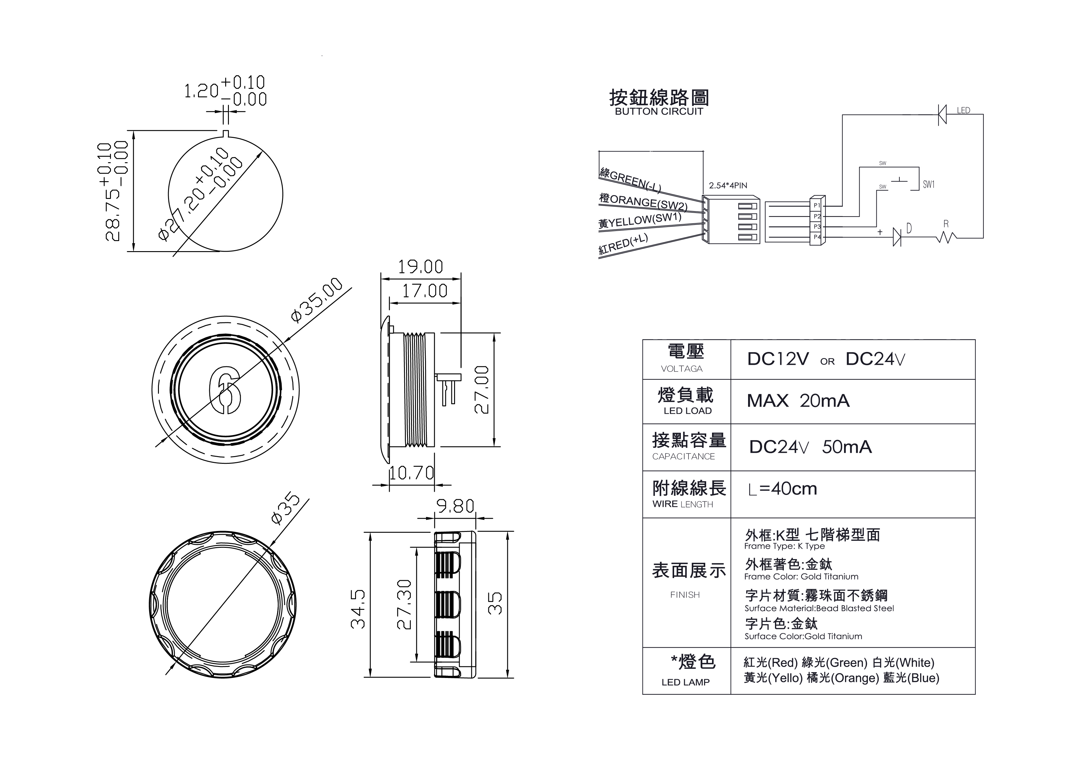 外觀尺寸 : Ø 35mm