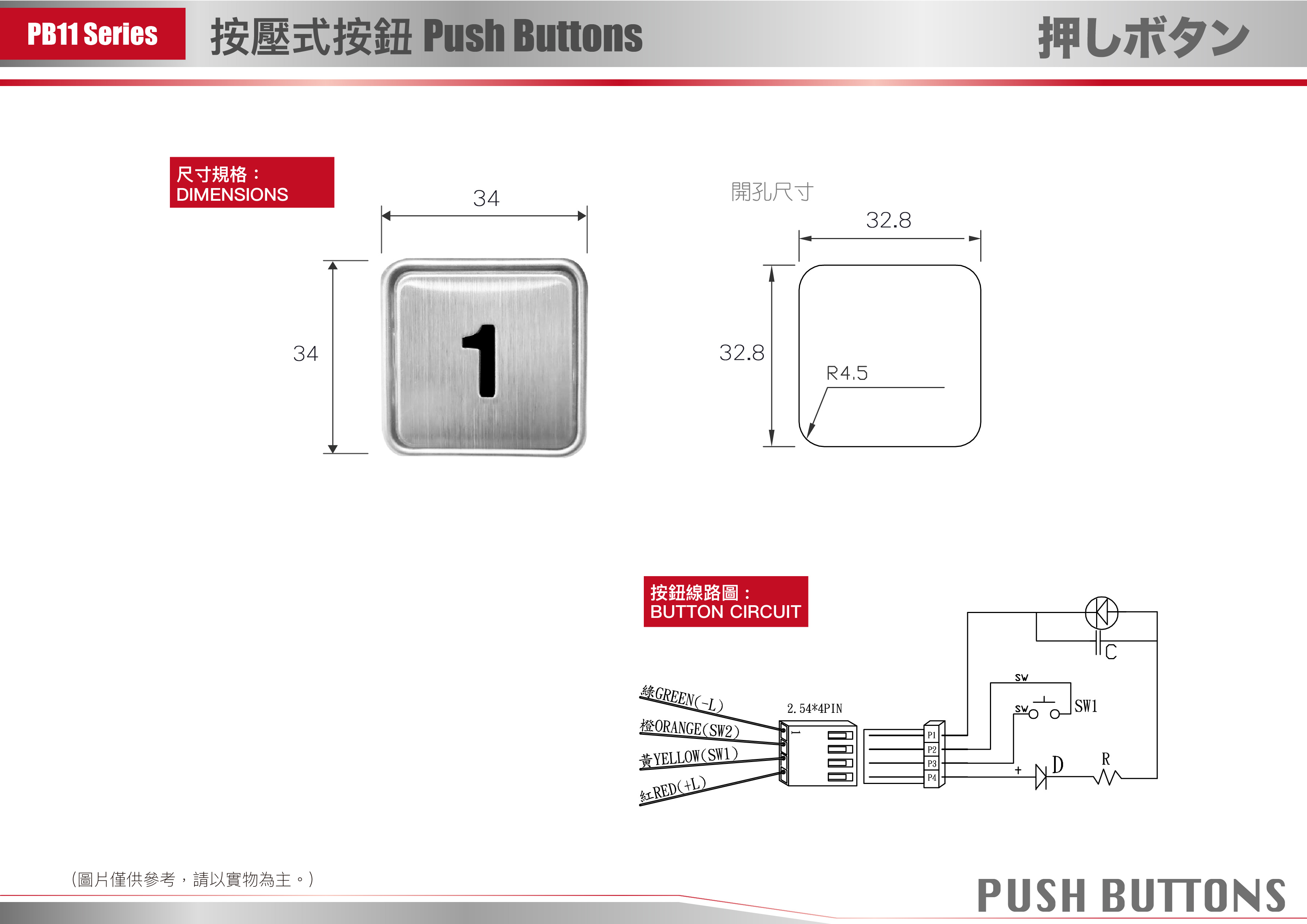 外觀尺寸 : 34 x 34 mm