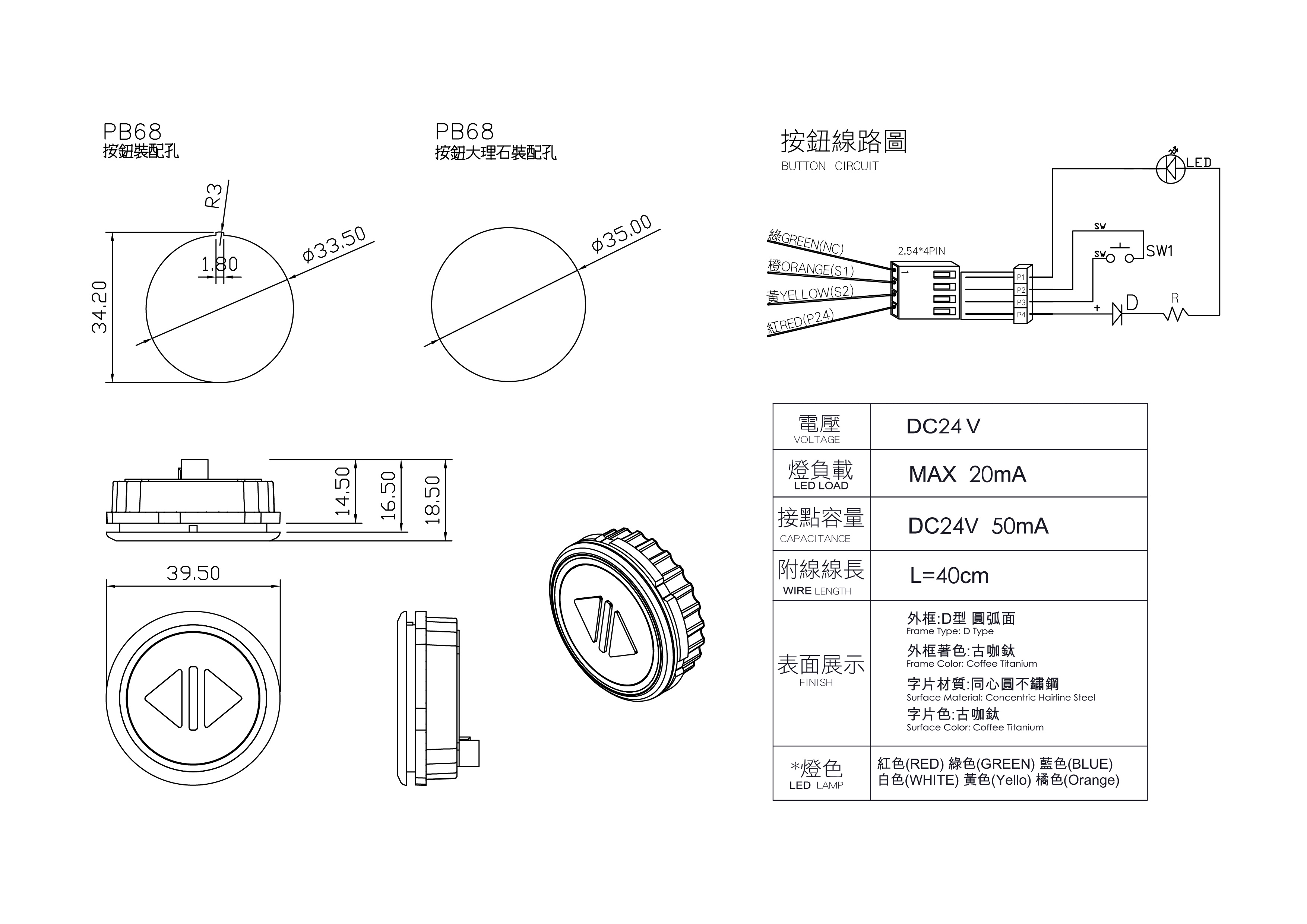 燈色選擇 : 紅/綠/黃/藍/橙/白