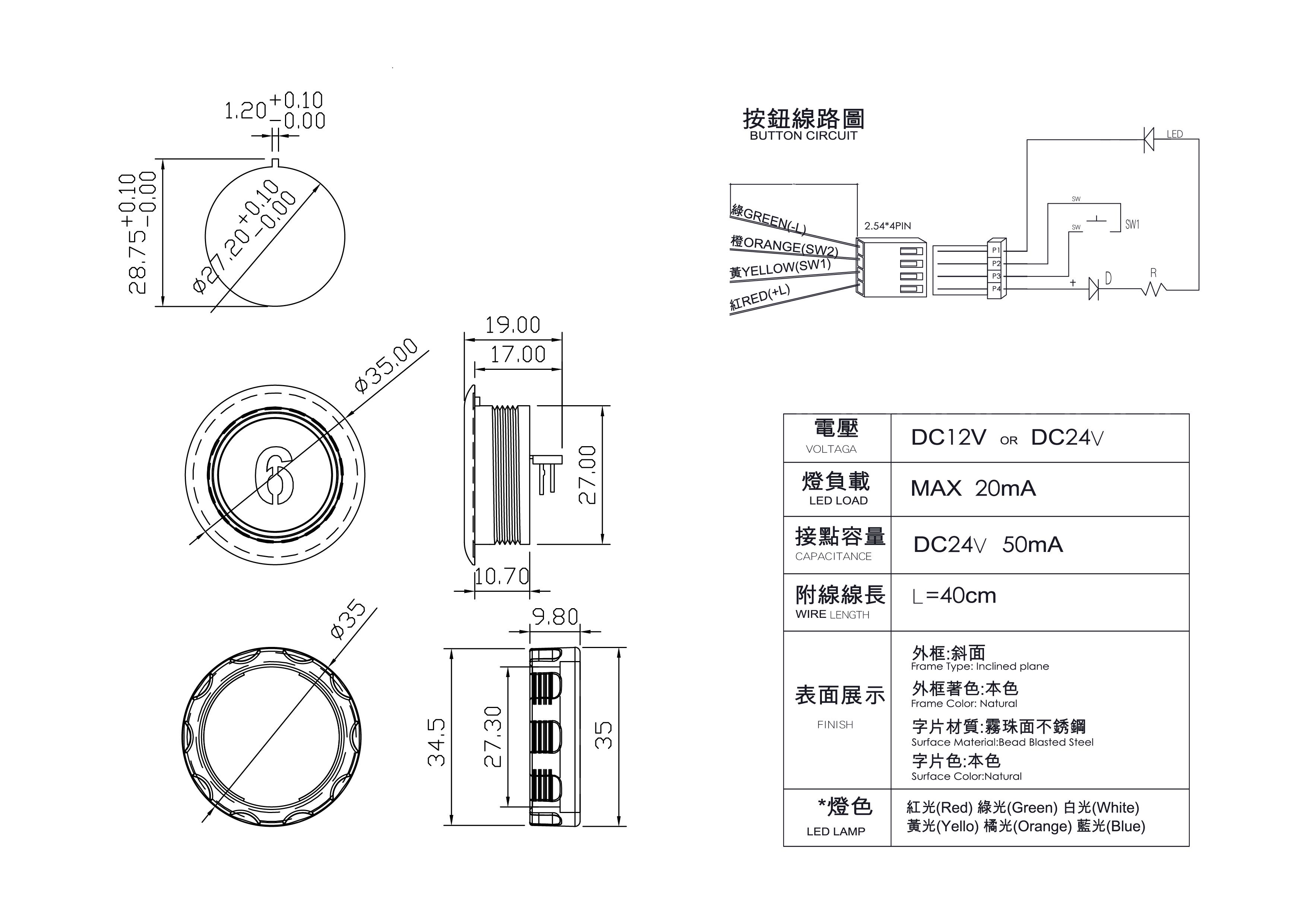 燈色選擇 : 紅/綠/黃/藍/橙/白