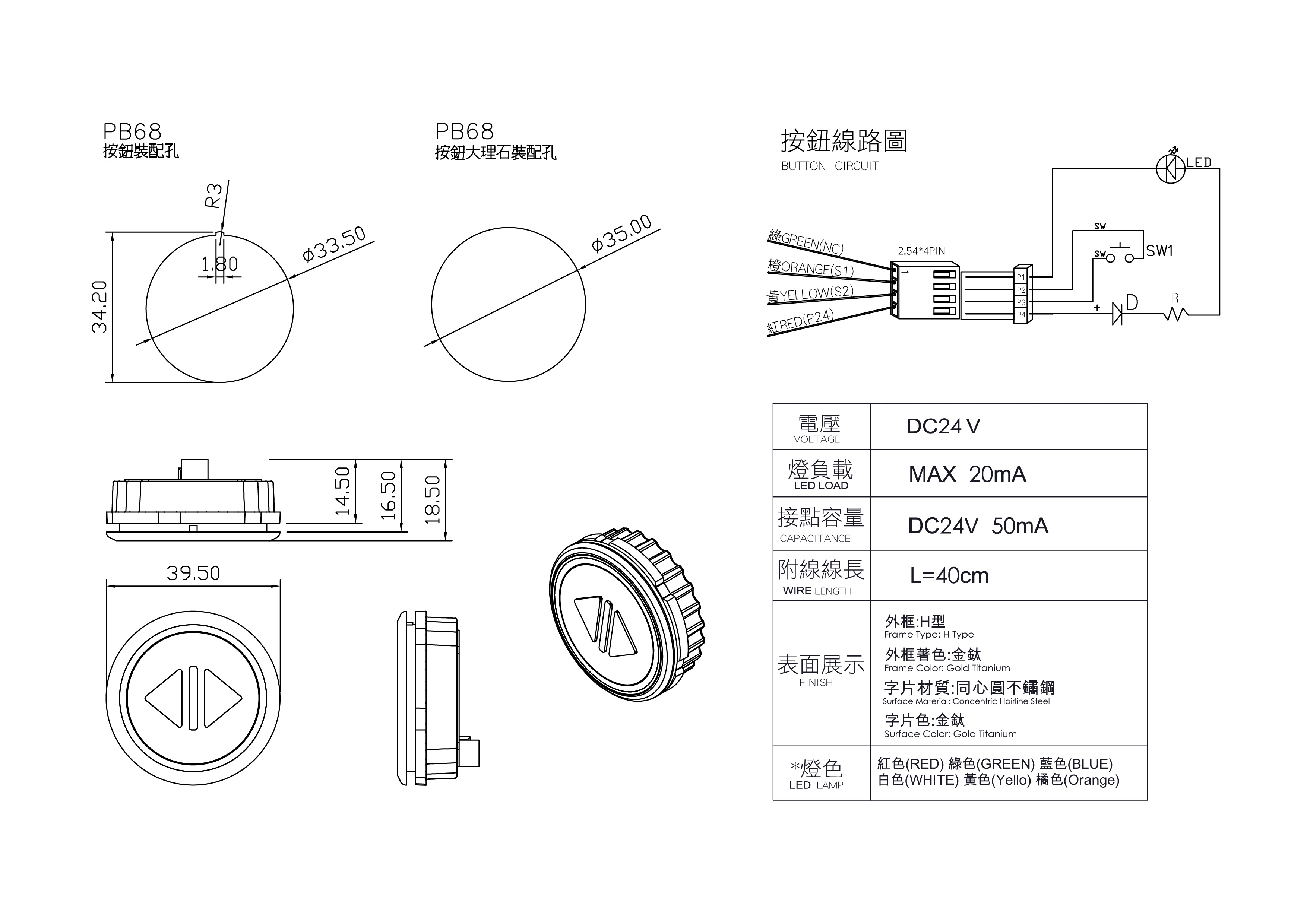 外觀尺寸 : Ø 39.5 mm